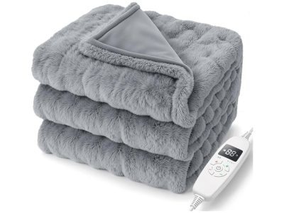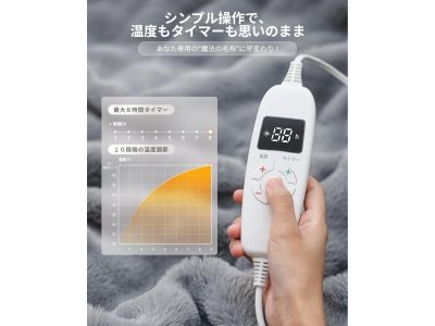 高級ラビットファー調のビッグサイズ。なめらかでふわっふわの手触りに癒されます♪ 温度調整は10段階、タイマー設定は8段階も可能!