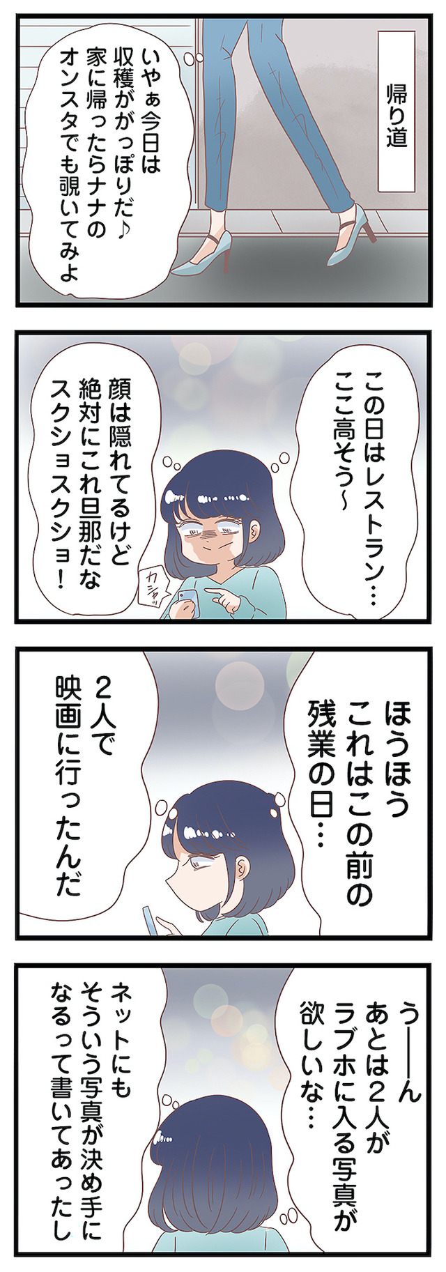 リュウタの妻の正体を知らずに、恋愛相談をするナナ。イチカは味方を装って証拠を集め、徹底的に2人を追い詰めるようとするが…。