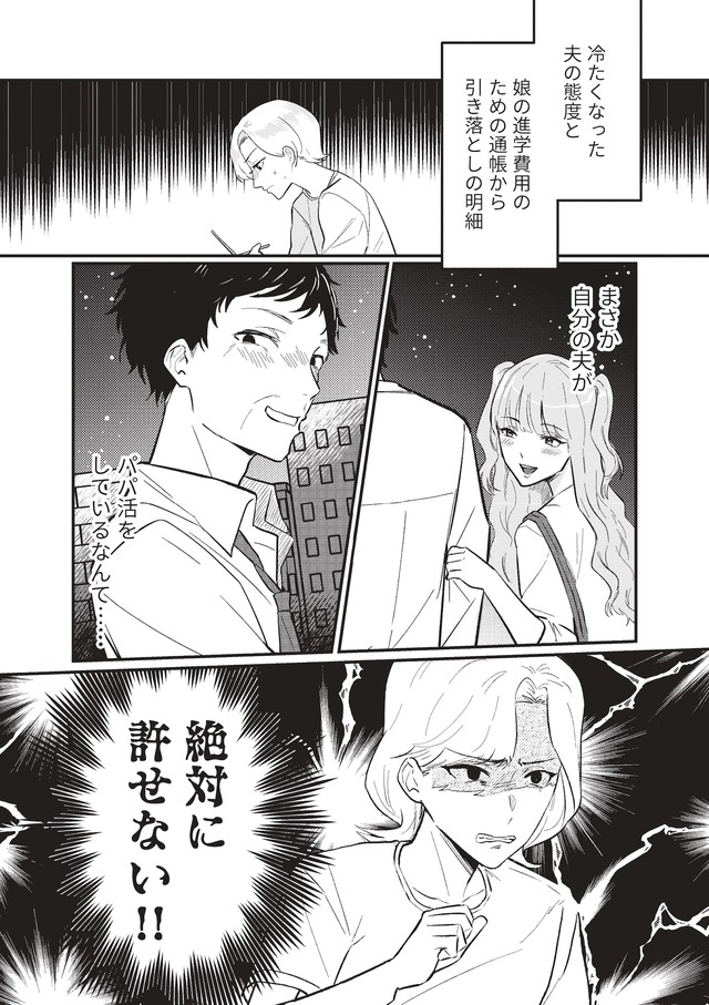 まさか夫が犯人…? ミヤコが夫のスマホを探ると、夫の「パパ活」が判明する。