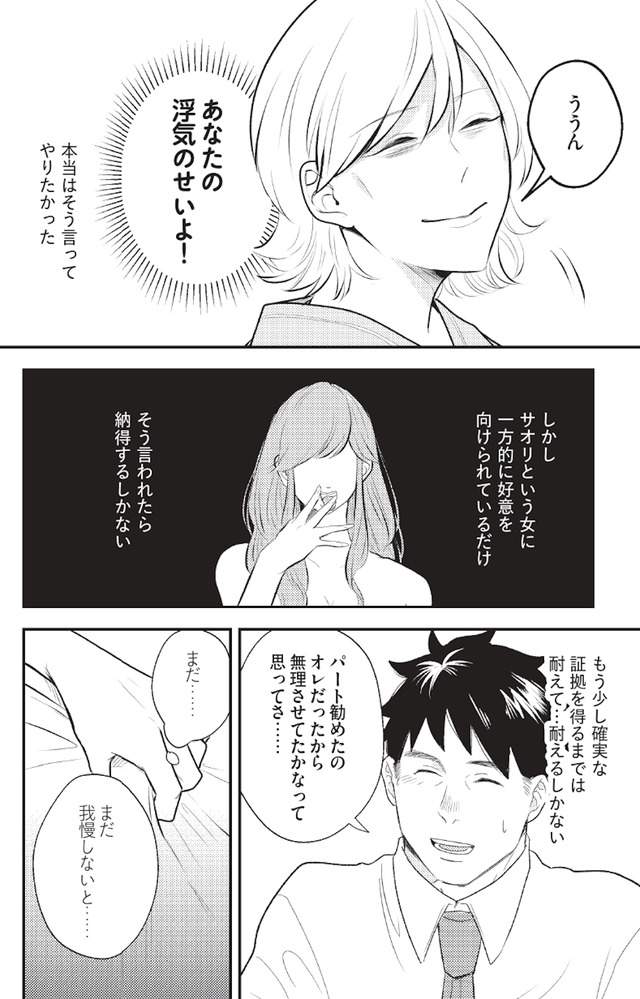 そんな中、妻の気持ちを理解せず、若い女と不倫を楽しむ夫。