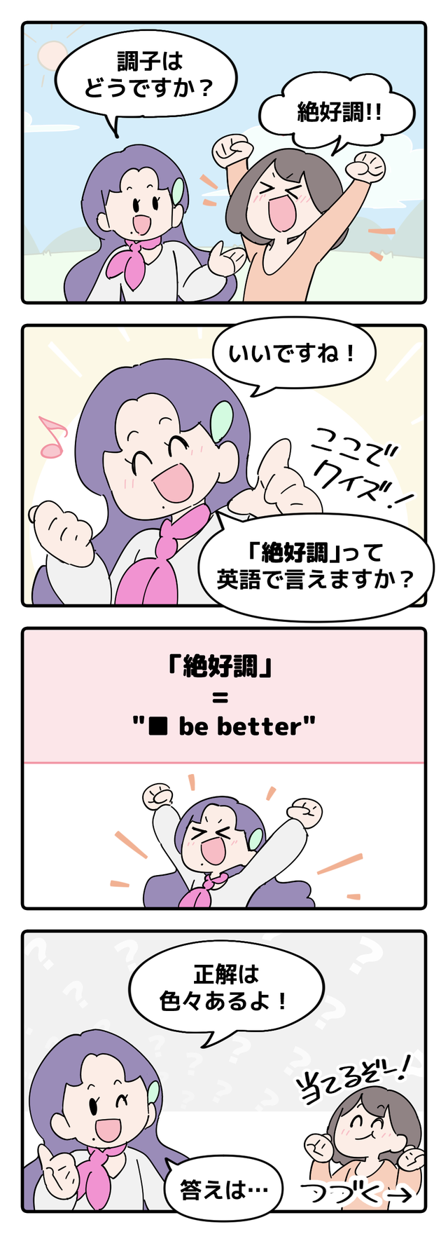 「英語嫌いな日本人をなくしたい!」海外生活や添乗員経験、そしてバイリンガル子育て中の英会話講師・Mrs.服部が、身近な英語表現を漫画&クイズ形式でお届け! 「間違ったら恥ずかしい」じゃなく「伝わればOK」。使えるフレーズをマンガで学びましょう!
