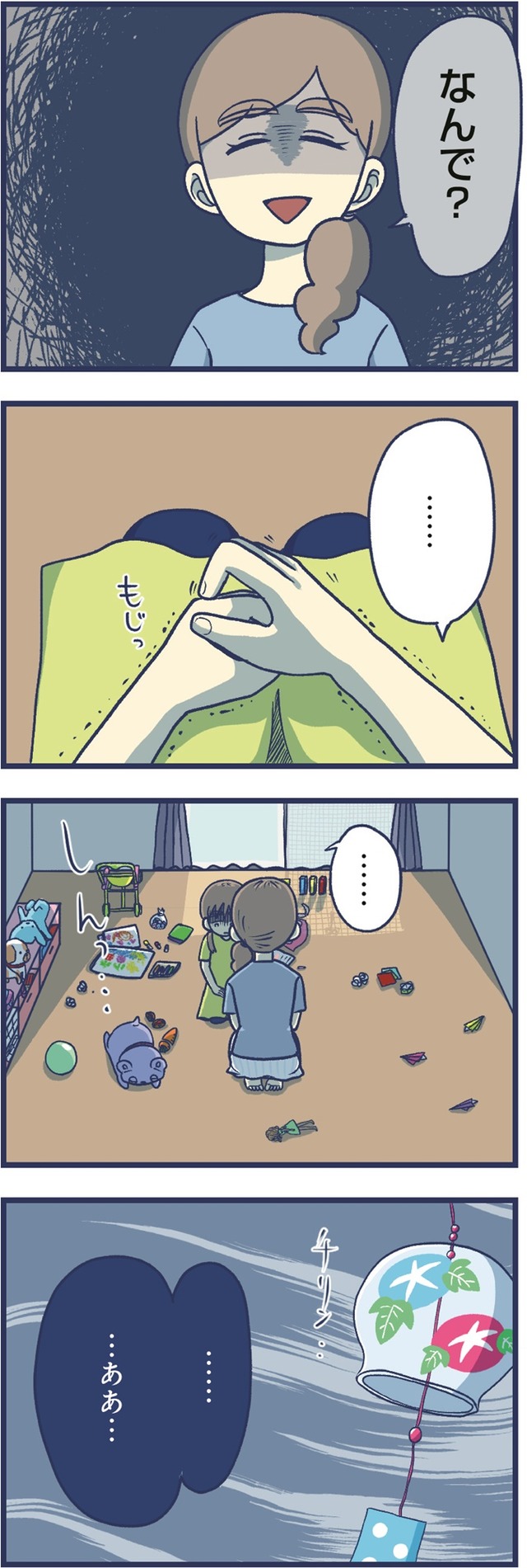 2人目を出産後、甘えてくるようになった4歳の長女。そんなある日、長女が自慰行為にふけっている現場を見てしまい、主人公は大きな衝撃を受けます。ネットで調べても「よくあること」「見守ってあげましょう」という言説ばかりで、母親の葛藤に寄り添うようなものは見当たりません。「娘が気持ち悪い」そう思ってしまう自分に苦しむ日々のなかで、徐々に追い詰められて……。今回は、幼すぎる性の目覚めに葛藤する母娘の苦しみを鮮烈に描いたコミックエッセイを特別抜粋でお届けします。