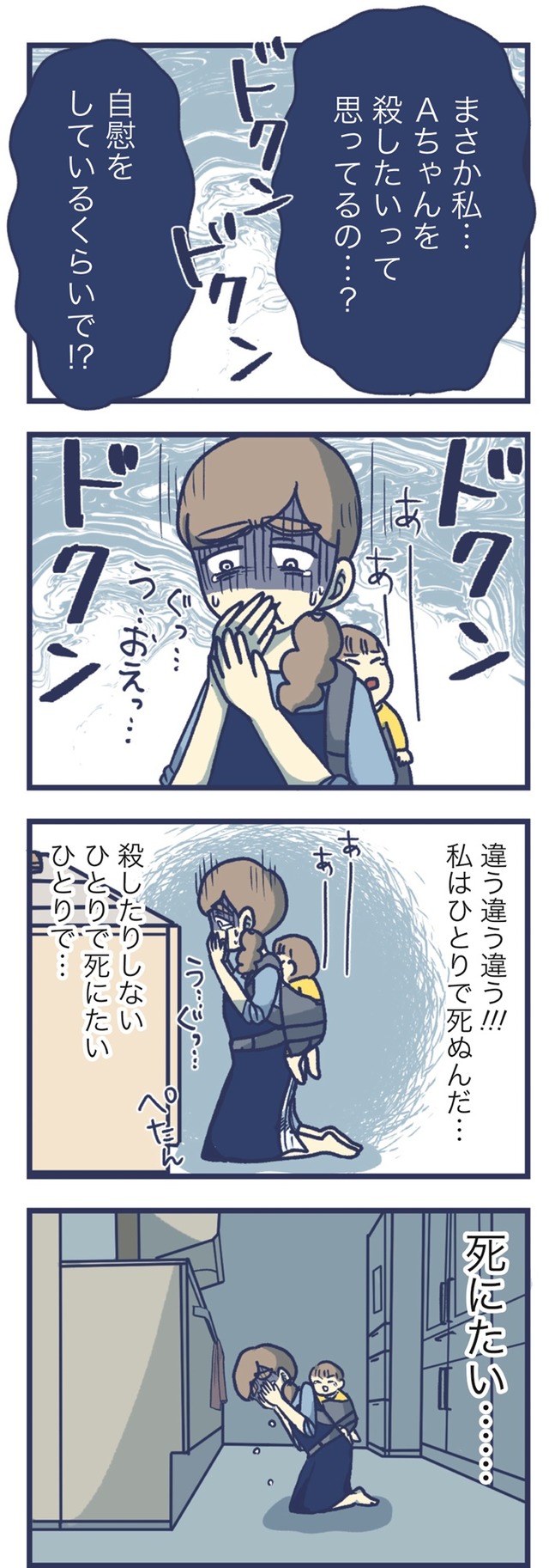 2人目を出産後、甘えてくるようになった4歳の長女。そんなある日、長女が自慰行為にふけっている現場を見てしまい、主人公は大きな衝撃を受けます。ネットで調べても「よくあること」「見守ってあげましょう」という言説ばかりで、母親の葛藤に寄り添うようなものは見当たりません。「娘が気持ち悪い」そう思ってしまう自分に苦しむ日々のなかで、徐々に追い詰められて……。今回は、幼すぎる性の目覚めに葛藤する母娘の苦しみを鮮烈に描いたコミックエッセイを特別抜粋でお届けします。