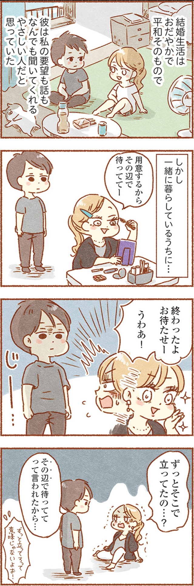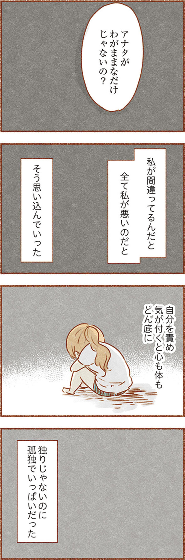 夫と会話がすれ違うたびに、妻は「全て私が悪い」と思い込み、心身ともにボロボロになってゆく…。