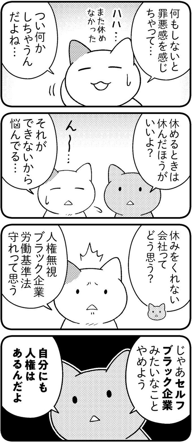 てください。自分も人権を持った一人の人間です。「人を休ませないのは悪いことだ」