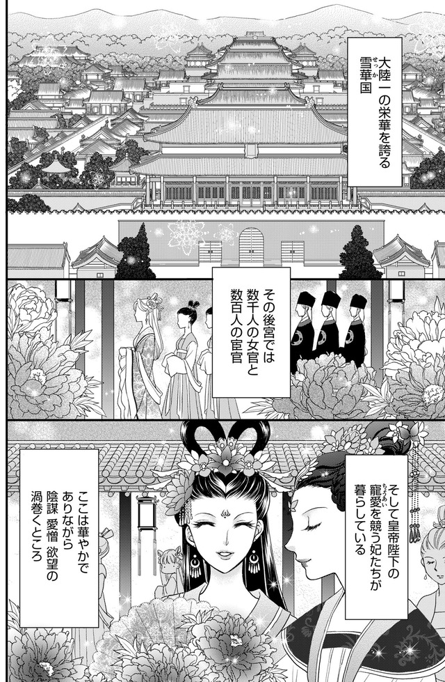そんなとき「傾国の美女」と謳われる上級妃、蘭楊(らんよう)が見るに見かねて助け船を出してくれたことで、意気投合した二人は後宮の争いから一線を引いて楽しく過ごすことになるのだが、二人が居るところは愛憎渦巻く場所……。ひょんなことから後宮内で起こった事件に莉花が巻き込まれてしまい……!?