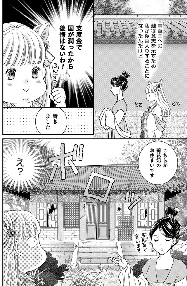 しかし、小国出身ということもあり、後宮とはいうものの掘っ立て小屋に毛の生えた程度の屋敷しか与えられなかった。