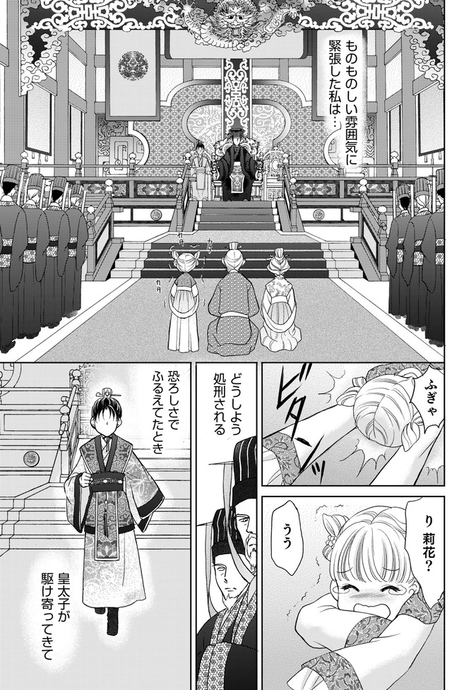 そんなとき「傾国の美女」と謳われる上級妃、蘭楊(らんよう)が見るに見かねて助け船を出してくれたことで、意気投合した二人は後宮の争いから一線を引いて楽しく過ごすことになるのだが、二人が居るところは愛憎渦巻く場所……。ひょんなことから後宮内で起こった事件に莉花が巻き込まれてしまい……!?