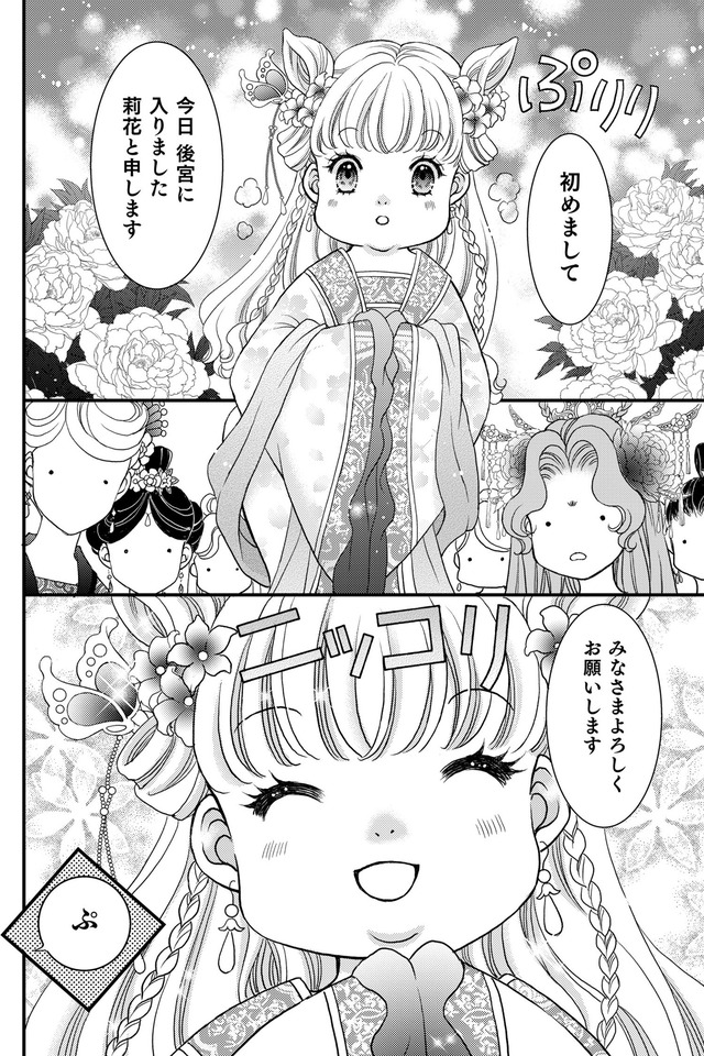 そんなとき「傾国の美女」と謳われる上級妃、蘭楊(らんよう)が見るに見かねて助け船を出してくれたことで、意気投合した二人は後宮の争いから一線を引いて楽しく過ごすことになるのだが、二人が居るところは愛憎渦巻く場所……。ひょんなことから後宮内で起こった事件に莉花が巻き込まれてしまい……!?