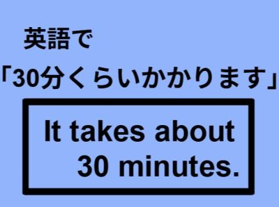 「It takes about (所要時間)+(交通手段).」で、「その(交通手段)で(所要時間)くらいです。」となります。