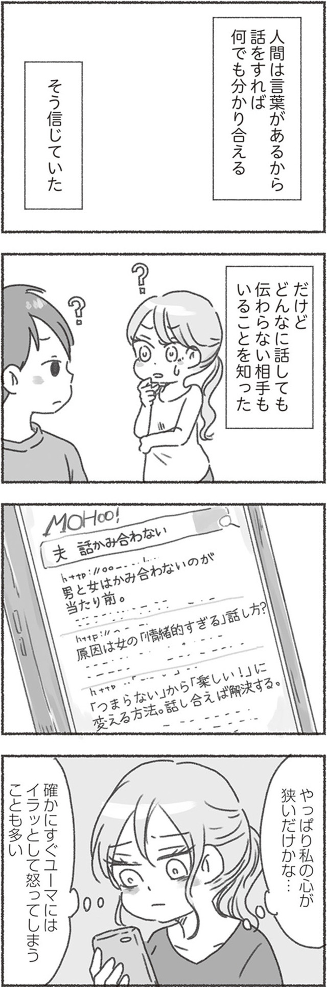 夫と会話がすれ違うたびに、妻は「全て私が悪い」と思い込み、心身ともにボロボロになってゆく…。