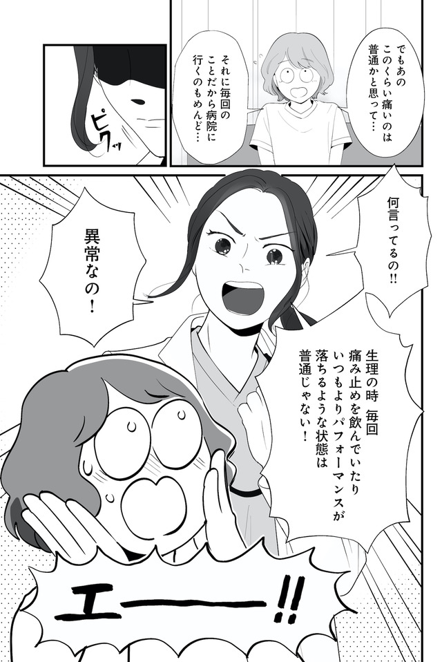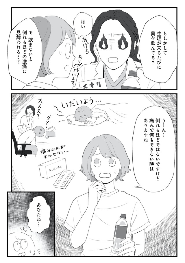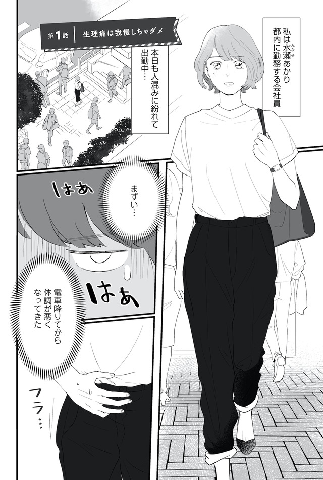 生理痛やPMSに苦しむあかり。通勤中、貧血で倒れて病院に運ばれたことをきっかけに、自分にあった生理用品や治療法を教えてもらうことに。