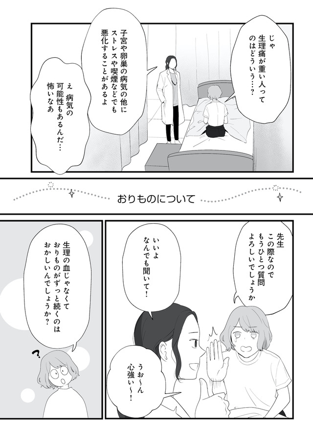 生理痛やPMSに苦しむあかり。通勤中、貧血で倒れて病院に運ばれたことをきっかけに、自分にあった生理用品や治療法を教えてもらうことに。