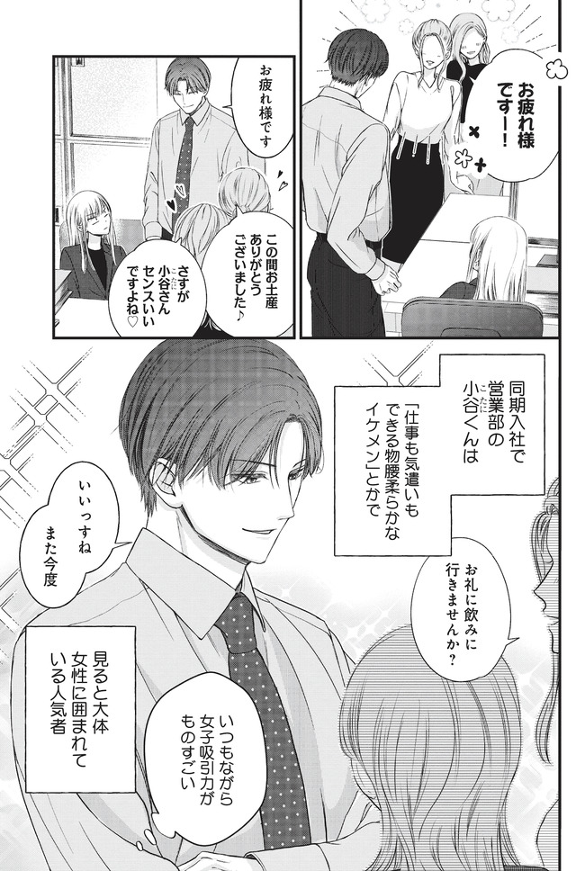 褒めてくれる先輩のことを密かに想っていたのに。知らなかった“衝撃の事実”とは?【愛が重すぎる小谷くんは、絶対に彼女を逃さない #1】