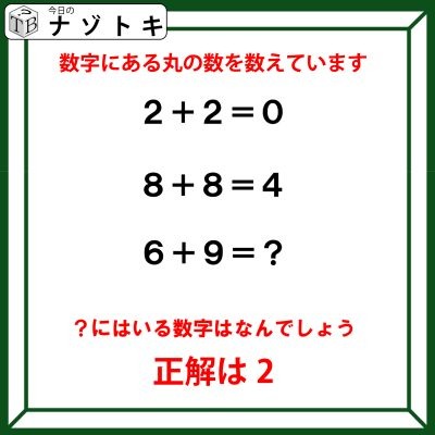 それは数字のなかに含まれている丸の個数です。例えば、8ならば上下に丸く囲まれた部分が二つあるため「2」となります。