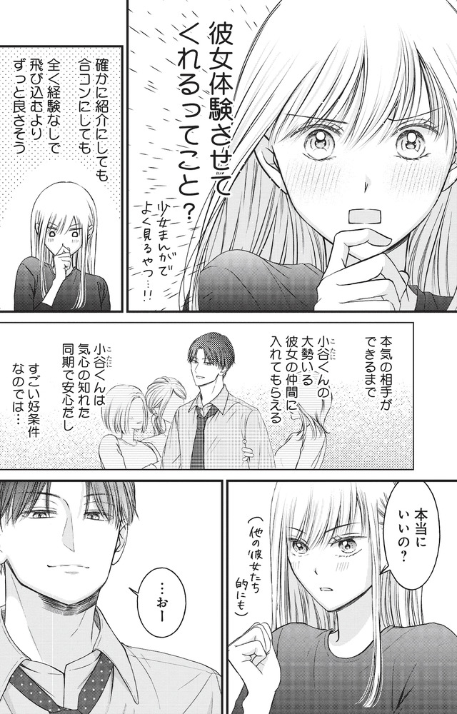 イケメン同期・小谷に悩みを打ち明けたところ、「男に慣れるために、試しに俺が付き合ってやろうか?」とまさかの提案が!