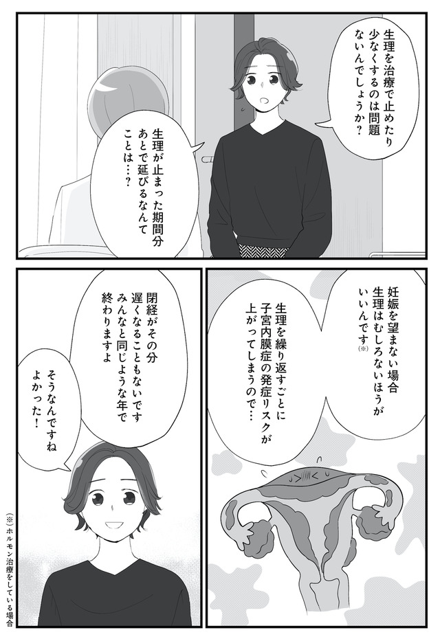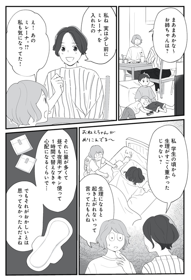 生理痛やPMSに苦しむあかり。通勤中、貧血で倒れて病院に運ばれたことをきっかけに、自分にあった生理用品や治療法を教えてもらうことに。