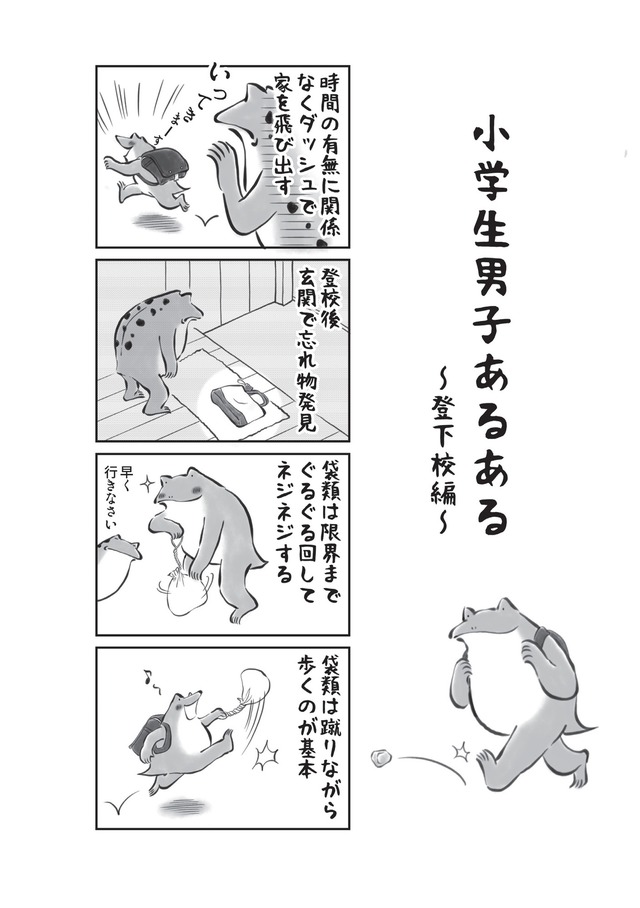 インスタ掲載作は本書のために全て描き直し、プロローグや入学式あるある、小学生男子の登下校編など描き下ろし70P超。育児の疲れを吹き飛ばす笑いと共感が満載で、ママもパパも必読の一冊。