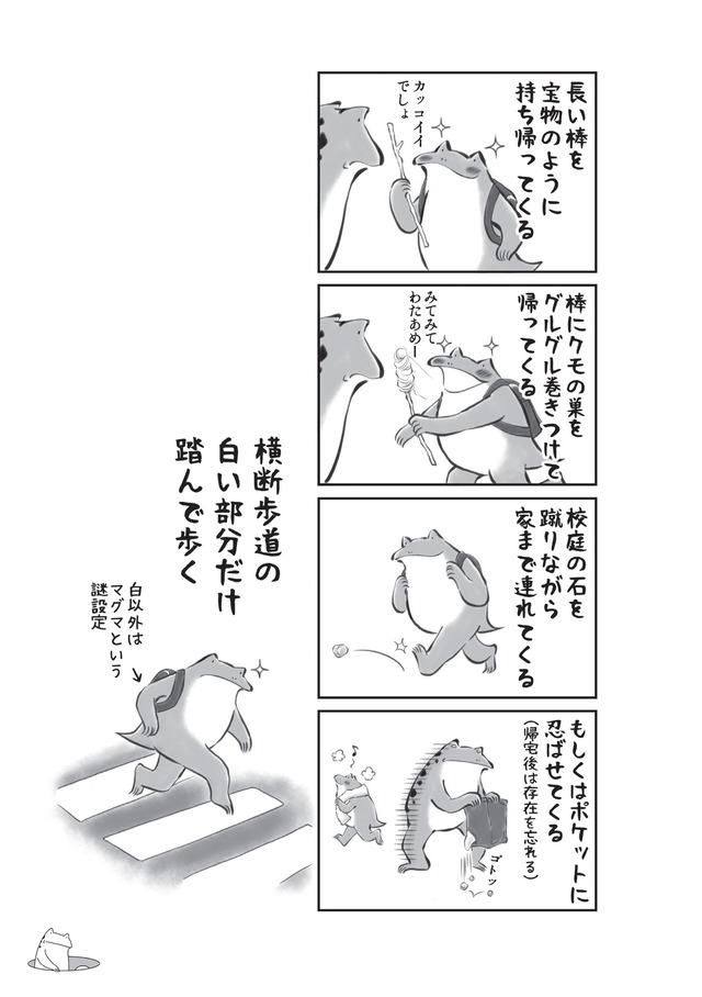 インスタで大人気のユウコトリトリが描く『カエル母さん』は、カエルの長男とおたまじゃくしの次男を中心に育児や家事の“あるある”を鳥獣戯画風にコミカルに描いた四コマ集。
