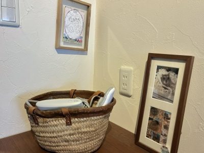 ちなみに、収納場所はスチーマーを使う壁の向かい側に。コンセントの目の前で、カゴに入れてあるだけなので、思いたったらワンアクションで取り出せます。出しっ放しにしやすいシンプルなデザインも◎なポイントです。
