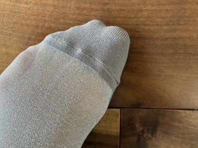 顧客から寄せられた「靴下のつま先が爪ですぐダメージを負ってしまう」という声に応えて開発された商品なのだそう。SNSでバズっていたのを思い出して、先のしょんぼり事件の直後に買いに走りました。