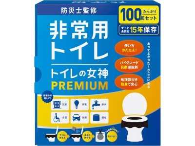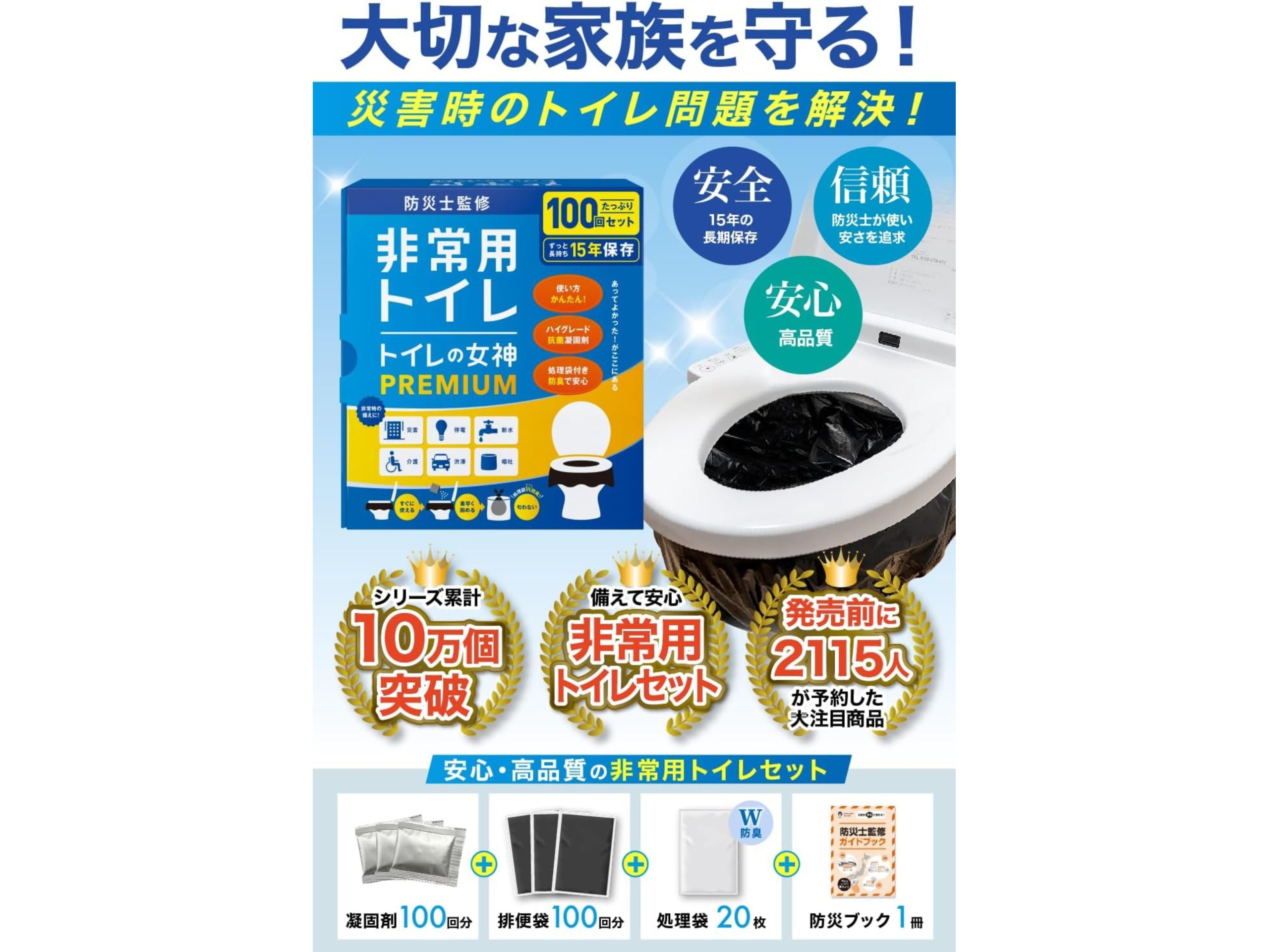 どこでも簡単トイレ トイレの女神PREMIUM 簡易トイレ 【防災士が監修】 15年保存&日本製 携帯/防災/非常用トイレ 防災グッズ 防災ガイドブック付き (100回)