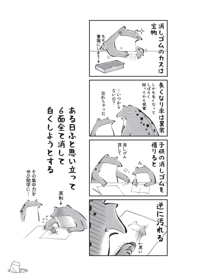 インスタで大人気のユウコトリトリが描く『カエル母さん』は、カエルの長男とおたまじゃくしの次男を中心に育児や家事の“あるある”を鳥獣戯画風にコミカルに描いた四コマ集。