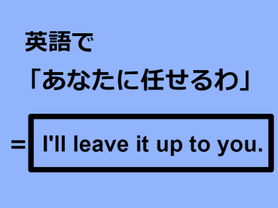 I’ll leave it up to you. は「あなたに完全なる信頼を寄せていますので、あなたにお任せします」というニュアンスを含むため、言われた方も嫌な気分にはなりません。
