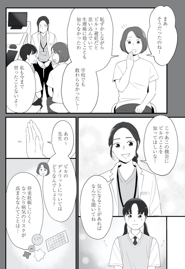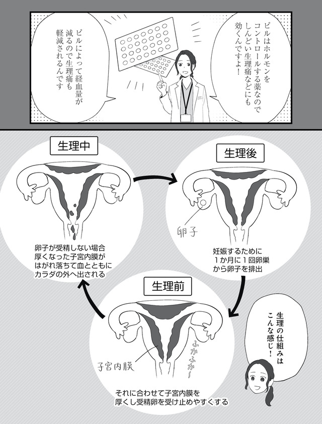 生理痛やPMSに苦しむあかり。通勤中、貧血で倒れて病院に運ばれたことをきっかけに、自分にあった生理用品や治療法を教えてもらうことに。