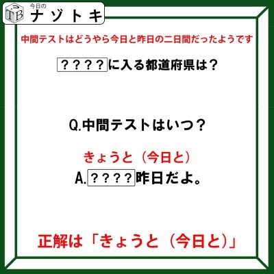 ハテナに当てはまる都道府県名を考えるナゾトキでした。