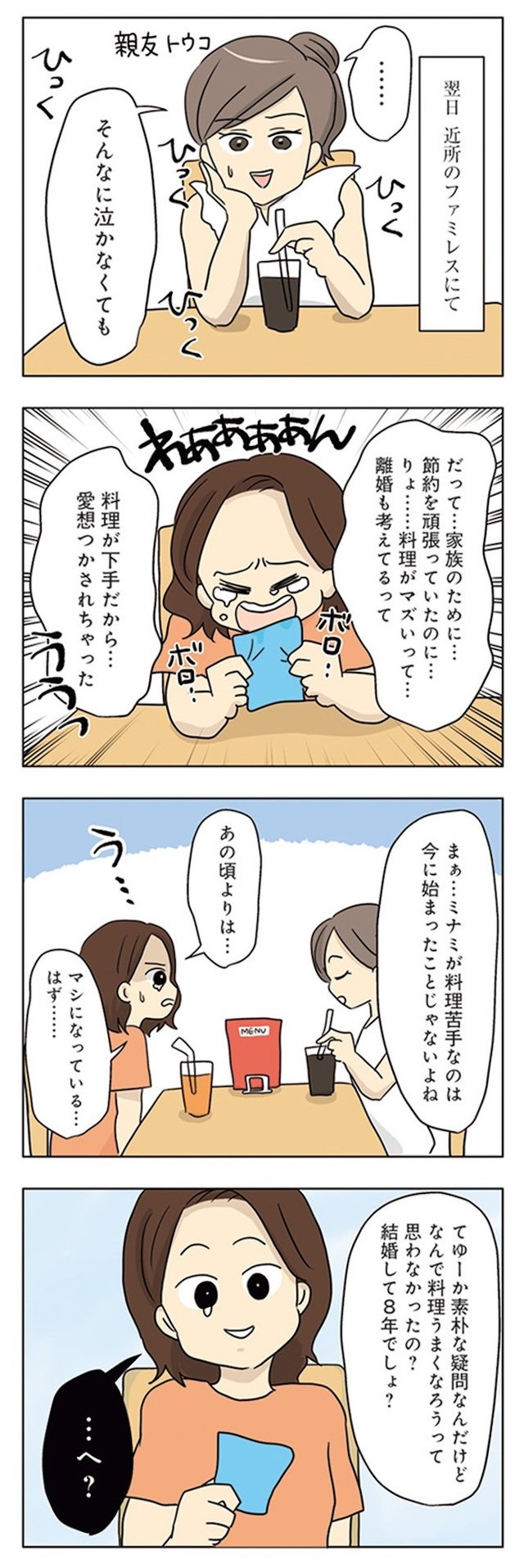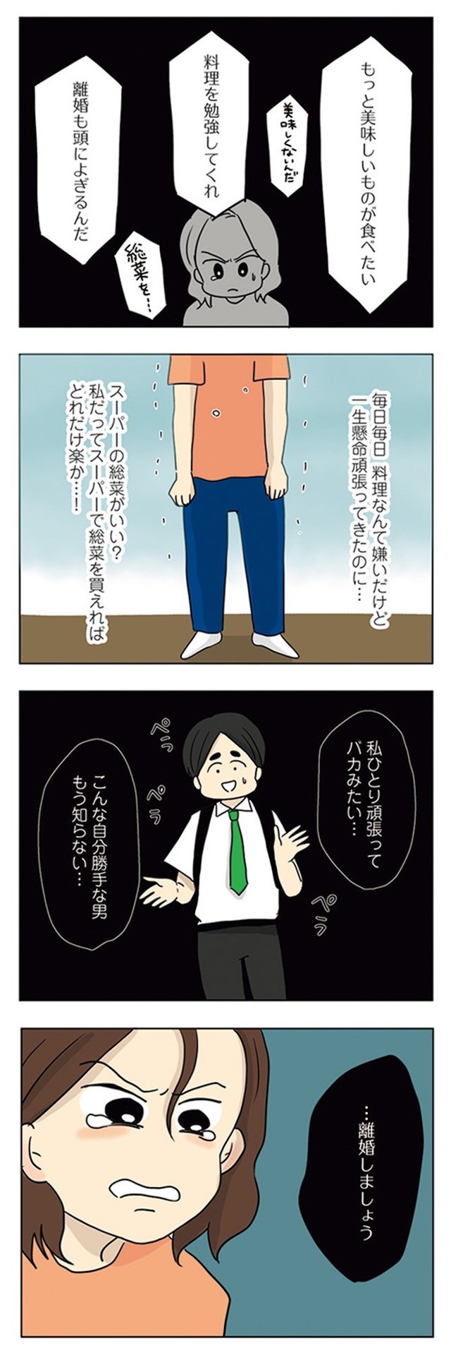 ある日、夫から「飯がマズすぎて、離婚が頭をよぎることもある」と打ち明けられる。