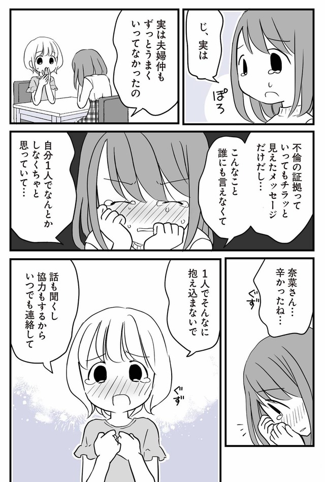 「今日も不倫してるのかな…」落ち込んでいると、ママ友が声をかけてきて?【タワマンのママ友に夫の不倫をバラされた #4】