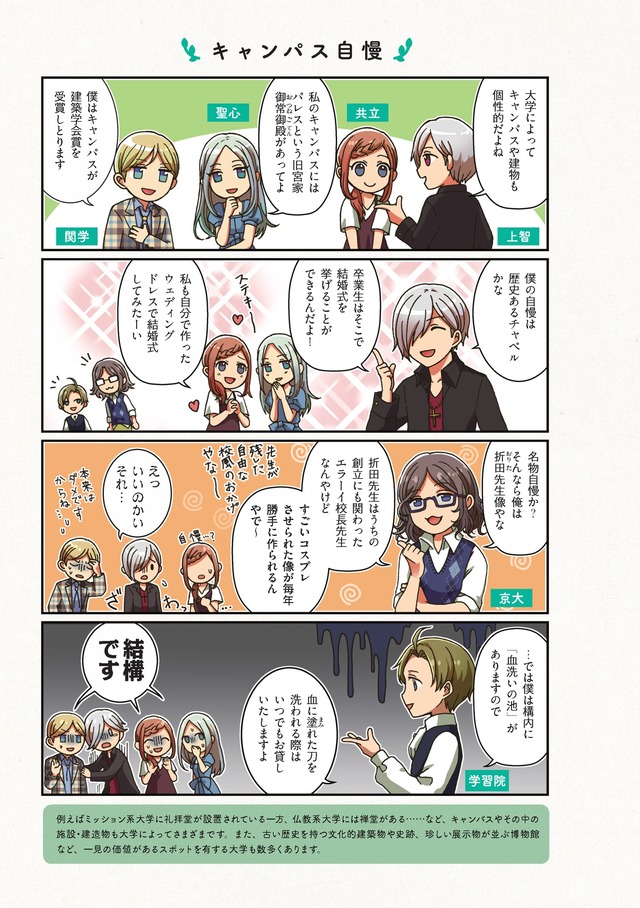 どの大学がどんな“クセ”を持つ? 首都圏・関西の国公立から私立、旧帝・理系・女子大・芸術大まで計70校をユニークに擬人化。ブログで話題を呼んだ連作が大幅加筆&描き下ろし多数で待望の書籍化。志望校や出身校の“あるある”を探してみよう!学風や学部、学食、キャンパス事情まで全方位の“あるある”ネタ満載。受験生も卒業生も楽しめる読み応えの一冊。
