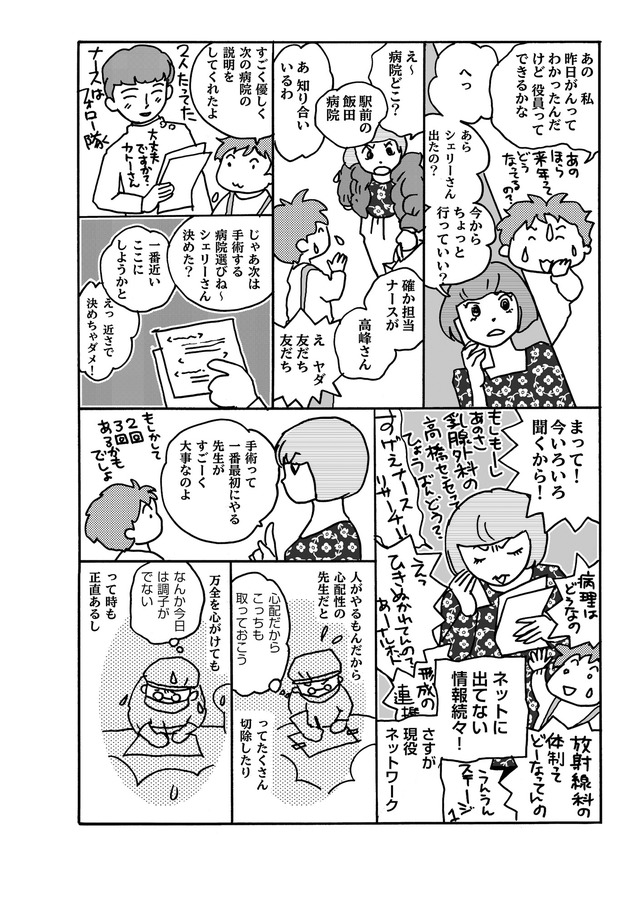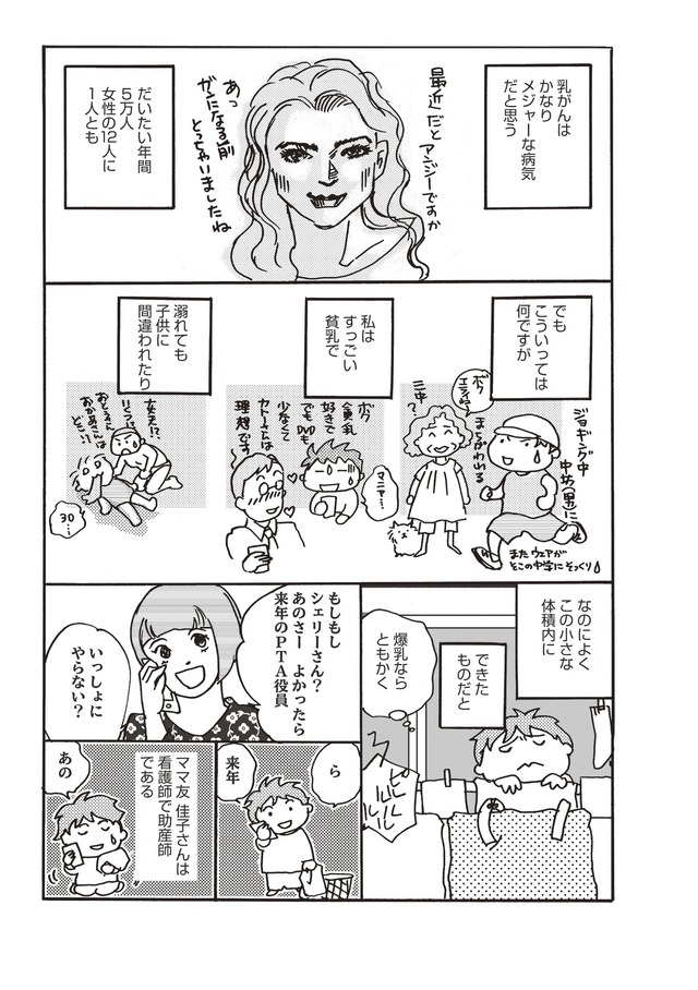 年一の健康診断で再検査の連絡が!そしてまさかの乳がんが判明!「病院ってどうやって選べばいいの?」「乳房の再建ってどうするの?」「お金はどれくらいかかる?」「術後ってどんな感じ?」家族やママ友、乳腺外科医、形成外科医、たくさんの人と関わりながら乳がんを乗り切る姿をポジティブに描く闘病マンガ。