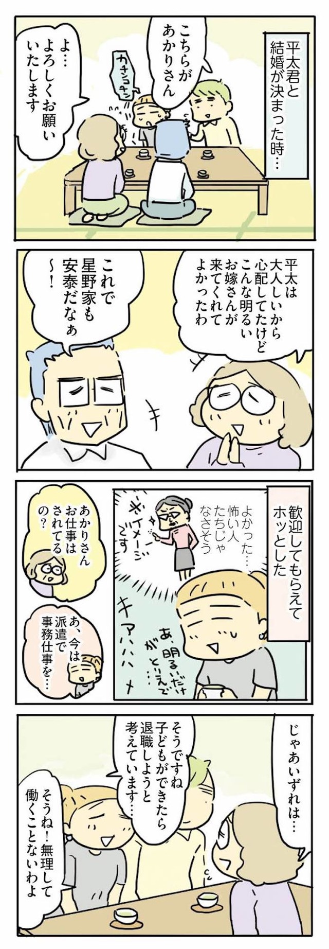 ごくフツウの主婦・あかりは、夫・平太の義両親と敷地内同居を始めることに。