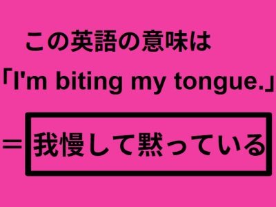 直訳すると「私は舌を噛んでいます」ですが、「言いたいことをぐっと我慢して黙っている」という意味の表現です。