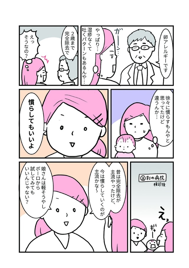 ※離乳食で卵を食べさせて症状が出た場合、保護者の方の自己判断で除去せずに医療機関に相談するようにしましょう。