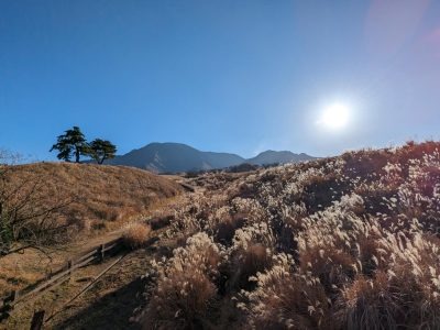 12月中旬の阿蘇は例年、抜けるような空を感じることが出来る空間です。空気は冷たいのですが、「太陽のどことない温かさと力強さを感じる」と思ったりもしましたが、太陽の軌道が低いために太陽を近く感じたからなのかもしれません。カルデラ地形の阿蘇は1年を通して神秘的な空気を感じることが出来ますが、冬の阿蘇も気分転換にはおすすめです。