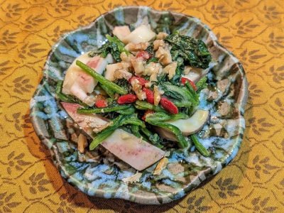 腎と膀胱に働きかけるレシピ、1つ目は「いかとほうれん草のくるみ酢みそ和え」