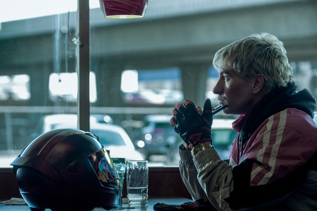車のライトやネオンに彩られた夜のロサンゼルスで、デーヴィスに対抗する組織のオーマン(バリー・コーガン)に狙われ、決死のバイクチェイスやカーチェイス、銃撃戦などの激しいアクションが展開、<暗黒の闇>が浮き彫りになっていく。