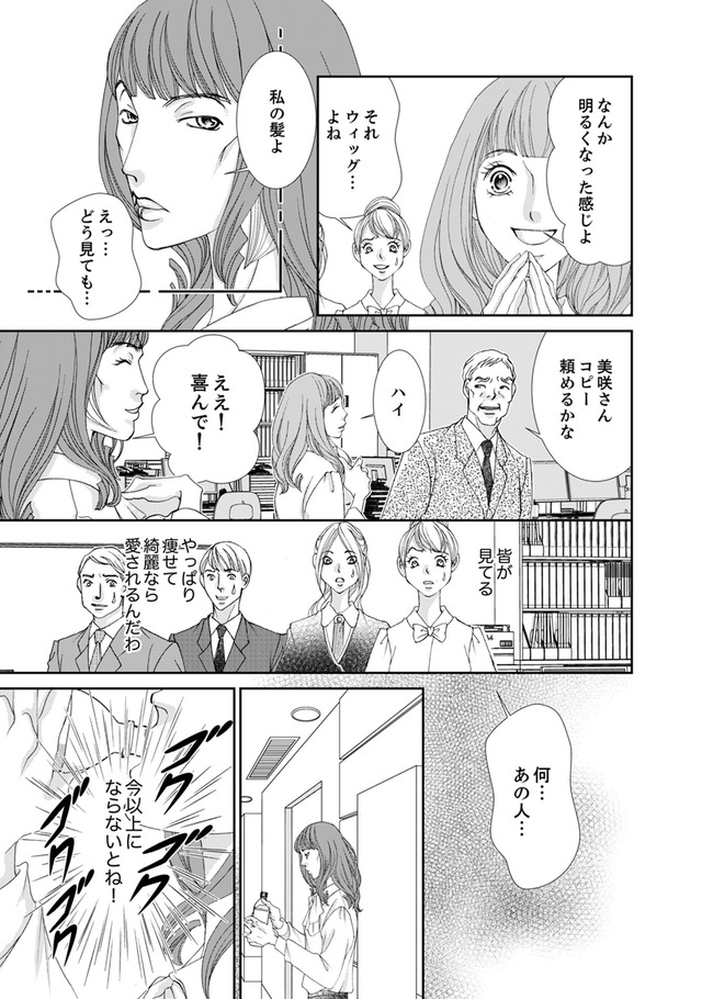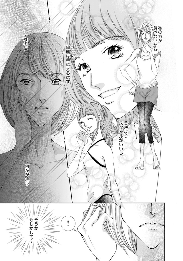 同僚のななみは、仕事ができず体型も自堕落。それなのに男が切れないことにイラつく主人公の礼子。ななみが礼子の想い人である上司を狙ってダイエットを始めたと知り、礼子は「あいつより絶対スリムに…!」という執念でサプリを荷重接収することに。女性の執念と嫉妬が導く衝撃の結末とは?
