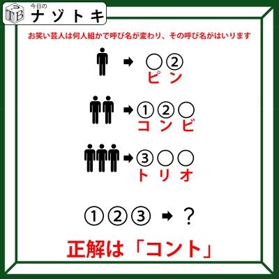 あとは文字を拾っていきましょう。正解は「コント」でした。