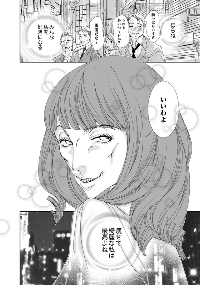 同僚のななみは、仕事ができず体型も自堕落。それなのに男が切れないことにイラつく主人公の礼子。ななみが礼子の想い人である上司を狙ってダイエットを始めたと知り、礼子は「あいつより絶対スリムに…!」という執念でサプリを荷重接収することに。女性の執念と嫉妬が導く衝撃の結末とは?