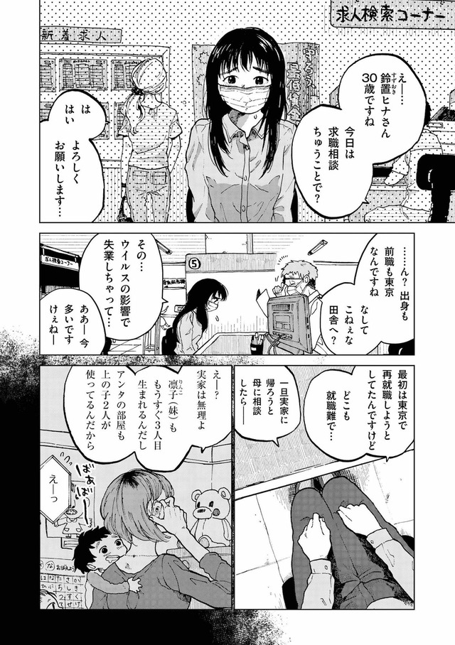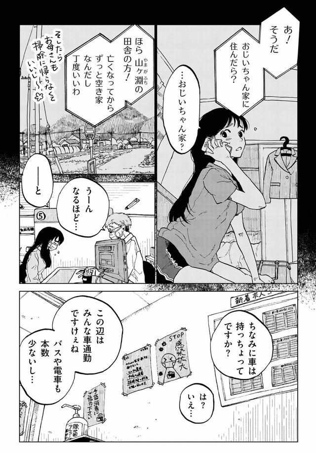 新型ウイルスが猛威を振るう、先行きの見えない非常事態下。日常や職を失い路頭に迷っていた鈴置ヒナは、暮らし慣れた東京から、かつて祖父が暮らしていた田舎へと転居する。