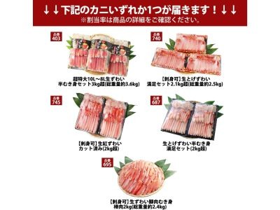 肉厚&ぷりっぷりの「生ずわいがに」が盛りだくさん。どのカニセットが届くかはお楽しみ♪「ボイル」タイプもあります