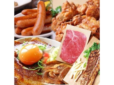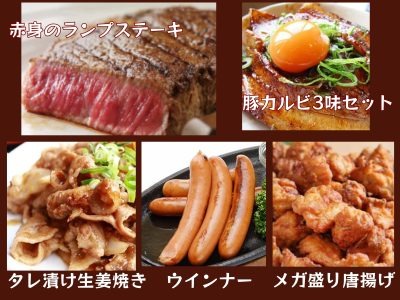 8種の肉を食べ比べできる、総量2kg越えのメガ盛り福袋。国産牛ランプステーキほか、鶏唐揚げはなんと1kgも! 調理が簡単な「味つけ済み」が多くてうれしい♪