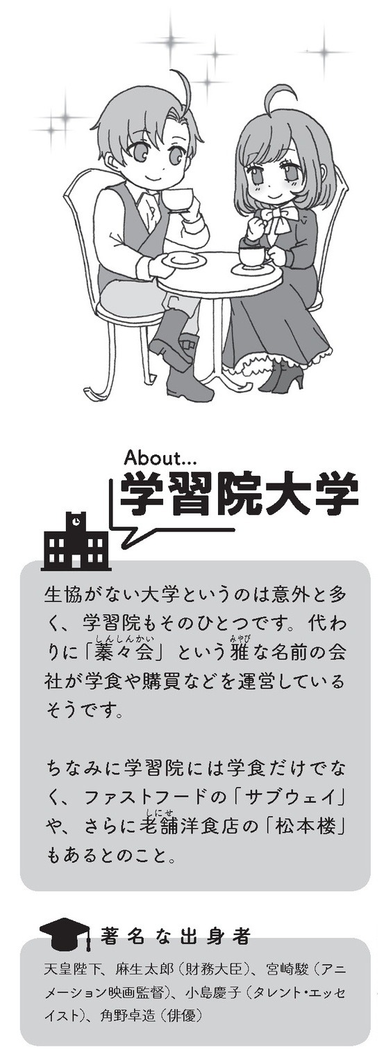 どの大学がどんな“クセ”を持つ? 首都圏・関西の国公立から私立、旧帝・理系・女子大・芸術大まで計70校をユニークに擬人化。ブログで話題を呼んだ連作が大幅加筆&描き下ろし多数で待望の書籍化。志望校や出身校の“あるある”を探してみよう!学風や学部、学食、キャンパス事情まで全方位の“あるある”ネタ満載。受験生も卒業生も楽しめる読み応えの一冊。