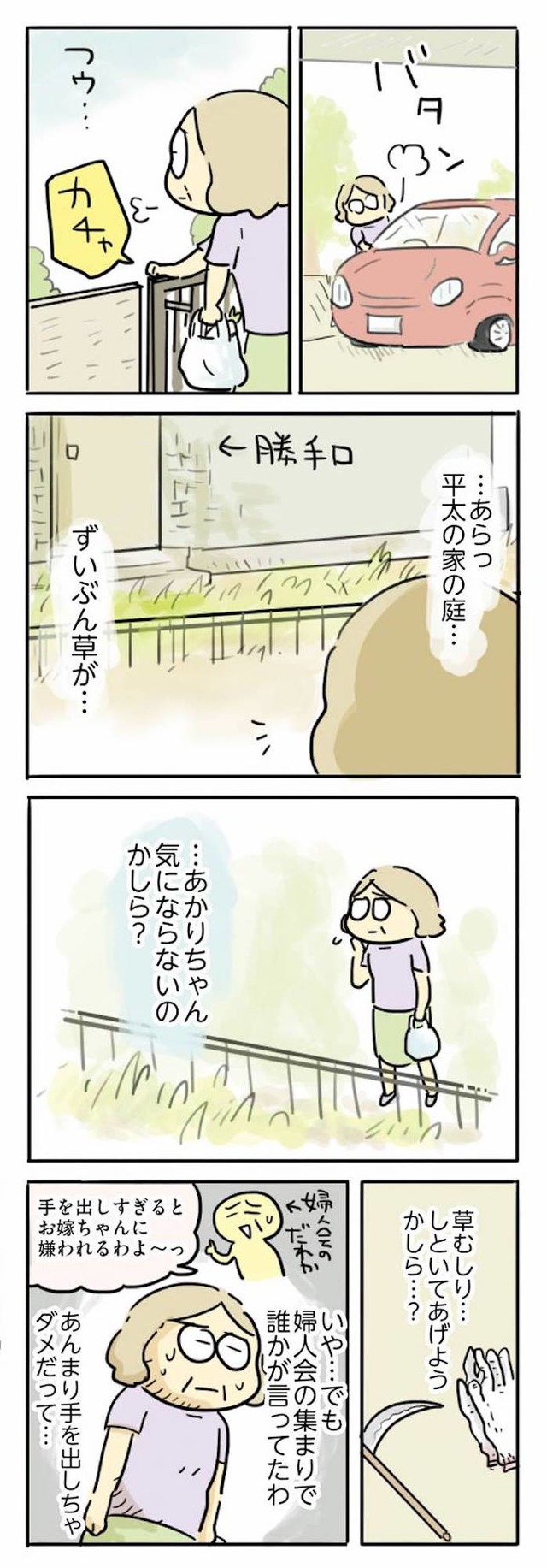 ごくフツウの主婦・あかりは、夫・平太の義両親と敷地内同居を始めることに。