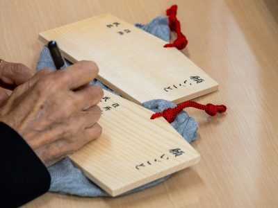 また、日本では昔、馬は神様と人とをつなぐ神聖な存在でした。たてがみをなびかせ力強く速く走る姿が「神様のところへ願いを急いで届けてくれる」と信じられ、神事にも欠かせない役割を担っていました。雨を願うときは黒毛の馬、晴れを望むときは白毛の馬を奉納するなど、祈りの内容に応じて毛色を選ぶ習わしも。しかし、本物の馬を奉納し続けるのは大きな負担となったため、次第に木や石で作られた馬像や、馬を描いた板が代わりとして奉納されるようになりました。これが「絵馬」の始まりです。