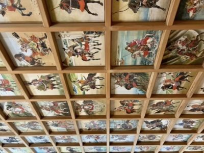 1642年に三代将軍・徳川家光公が三十三間堂を建立し、守護神として稲荷大明神を勧請して創建。御祭神は倉稲魂命と福禄寿。浅草名所七福神のとしても知られ、ご神徳は五穀豊穣、長寿、商売繁盛、開運、所願成就、縁結びなどです。拝殿の天井には神話の時代から近代までの日本馬乗史を描いた100枚の絵が奉納されていて、馬にまつわる歴史を学ぶことができます。